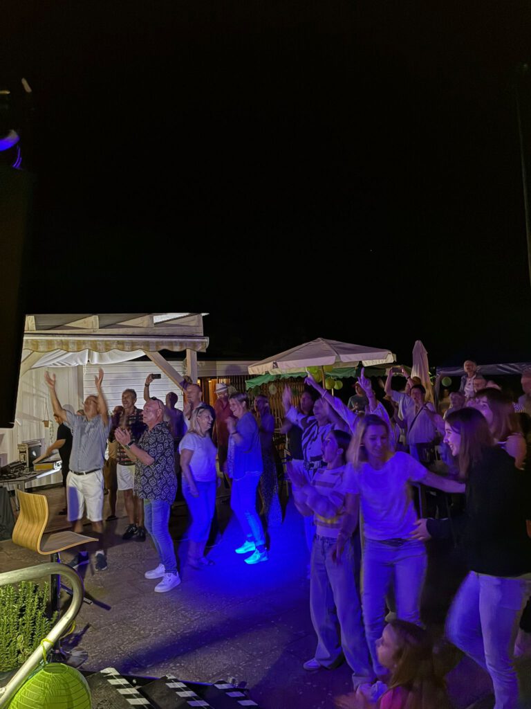 Es war schön, mal wieder einige Personen aus früheren TCA-Jahren zu treffen. Manche ehemaligen Mitglieder waren extra aus Norddeutschland oder vom Bodensee angereist. Mit den Senioren aus den Gründungsjahren bis zu den gerade erst eingestiegenen Kids waren praktisch vier Generationen vertreten. Die einen tobten in der Hüpfburg oder machten beim Kinderprogramm mit, andere tauschten bei einem Glas Wein, Aperol oder anderen Getränken alte Erinnerungen aus.