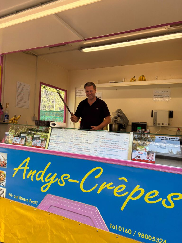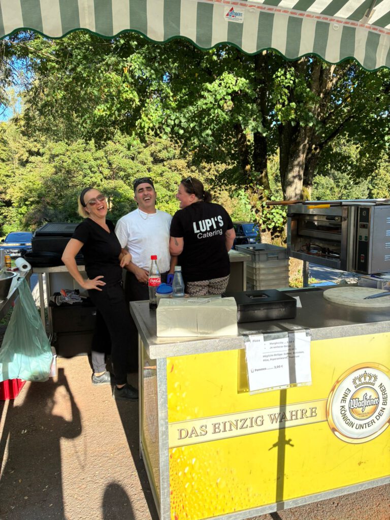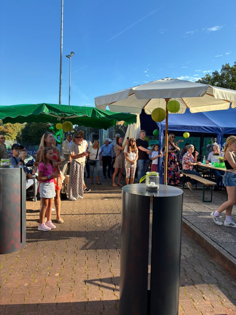 Für das leibliche Wohl sorgte ein Foodcourt mit Crepes, Pizza, Pommes und Roter Wurst. Am Getränkestand war neben Wein, Sekt und Bier der von unseren Helferinnen lecker gemixte Aperol Spritz der Favorit. Bei den hohen Temperaturen waren natürlich auch Getränke ohne Alkohol gefragt.