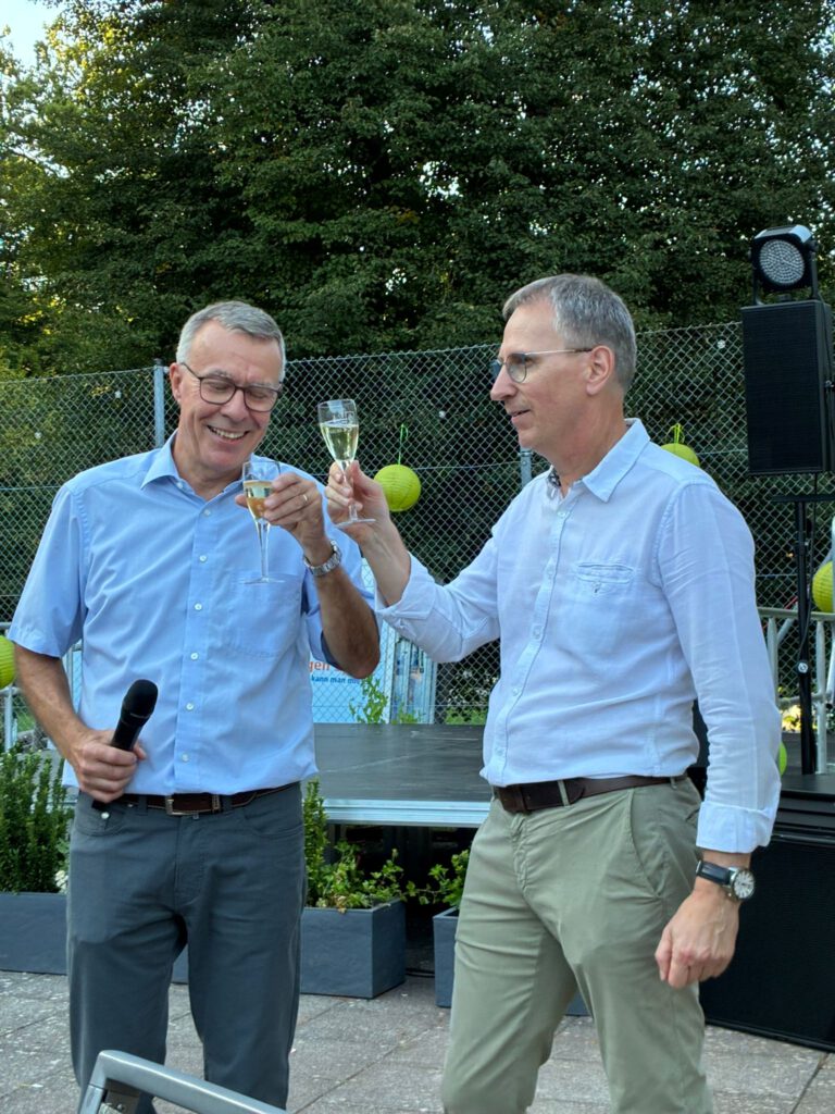 In kurzen Ansprachen gab es vom Ehrenvorsitzenden Heinz Müller Informationen aus den Anfangszeiten des TC Aspach. Der frühere Sportwart Winfried Reh berichtete von den sportlichen Höhenflügen des Vereins. Bürgermeisterin Sabine Welte-Hauff überbrachte einen Gruß und eine Jubiläumsgabe der Gemeinde und betonte die wichtige Rolle der Vereine für das Leben in der Gemeinde Aspach. Die aktuellen Vorsitzenden Delf Henning und Philip Beveridge, die nun auch schon seit 2008 im Amt sind, können auf eine zuletzt sehr positive Entwicklung der Mitgliederzahlen und der Altersstruktur des Vereins zurückblicken. Sie erwähnten, dass es so langsam vielleicht auch mal Zeit für den nächsten Generationswechsel in der Vereinsführung wird.
